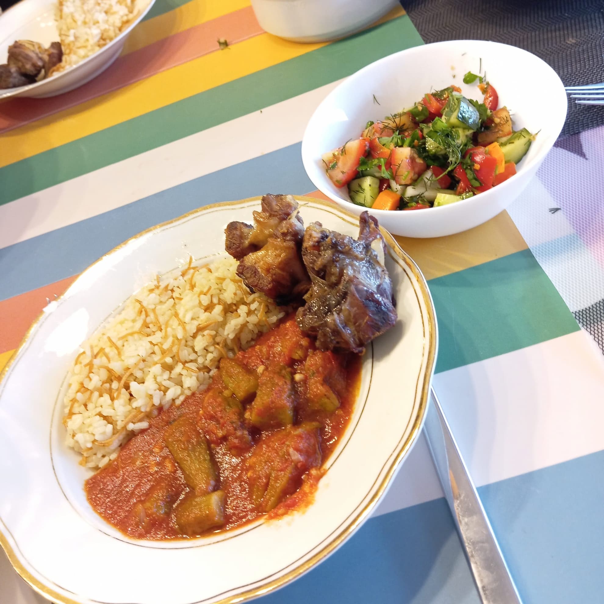 Fleisch mit Okra und Reis