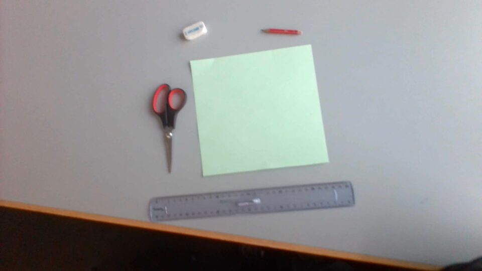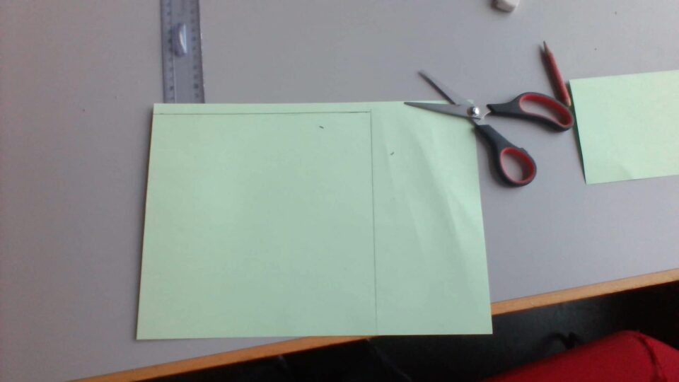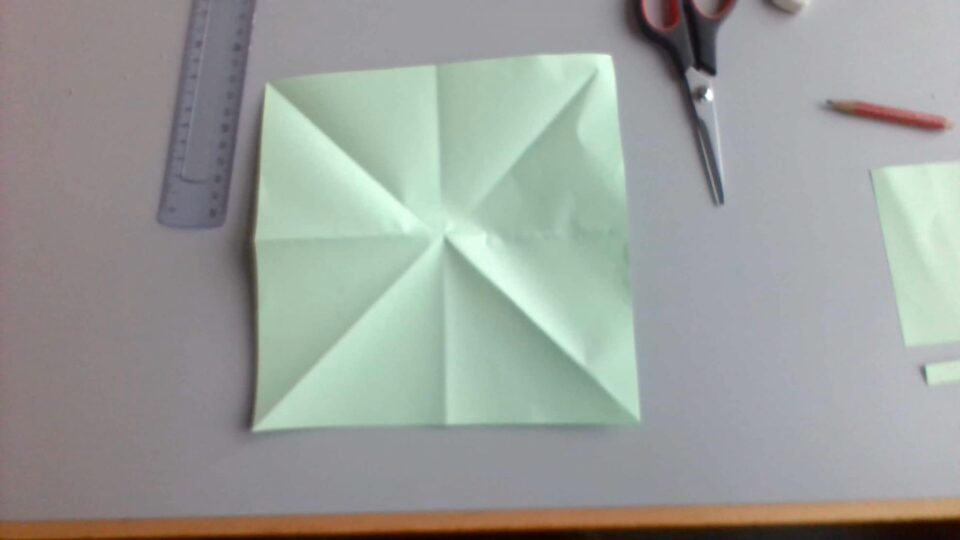 Das Papier quadratisch zuschneiden und zwei Mal in der Mitte falten.