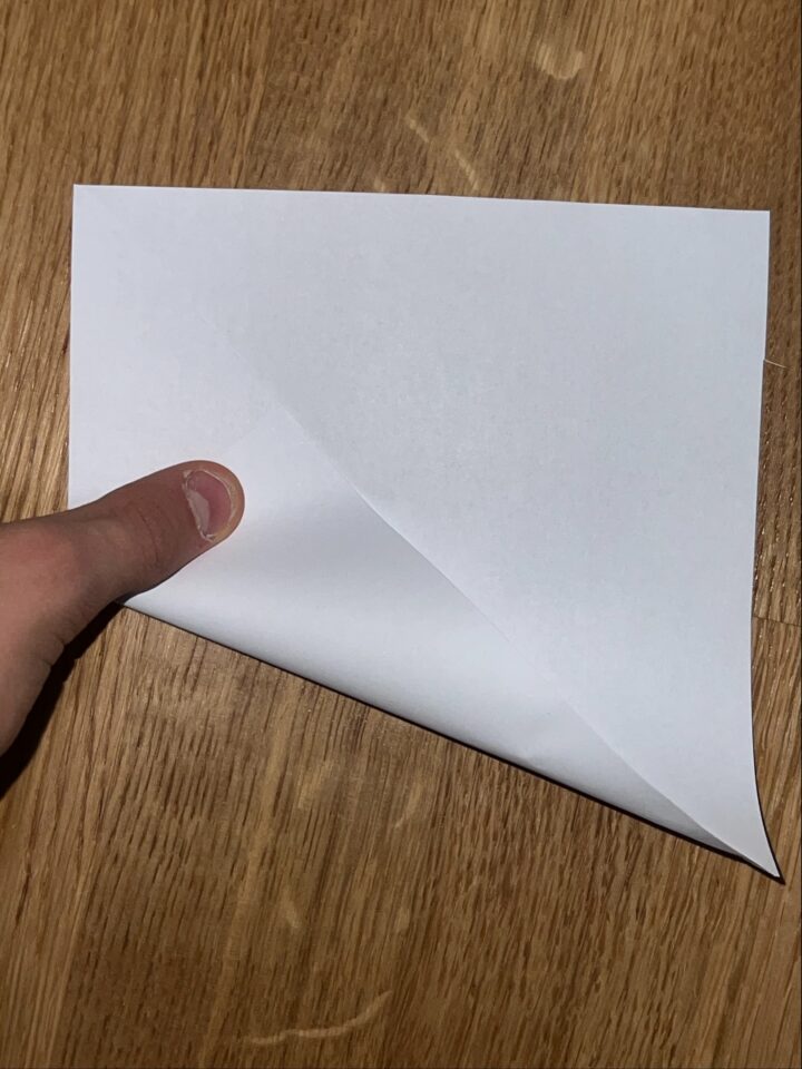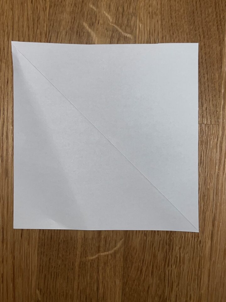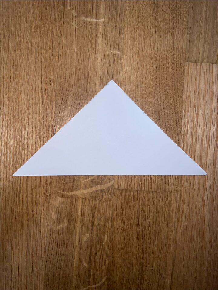 Falte es diagonal zu einem Dreieckund öffne es wieder.