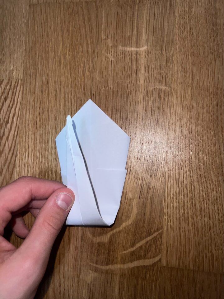Falte die untere Spitze bis nach oben entlang der Mittellinie.