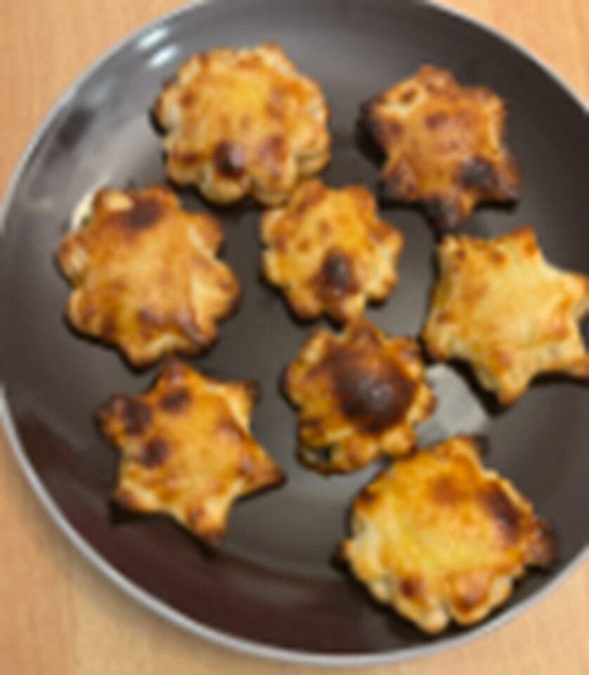 Bei 180°C (Ober-/Unterhitze), 10–12 Minuten goldgelb backen.