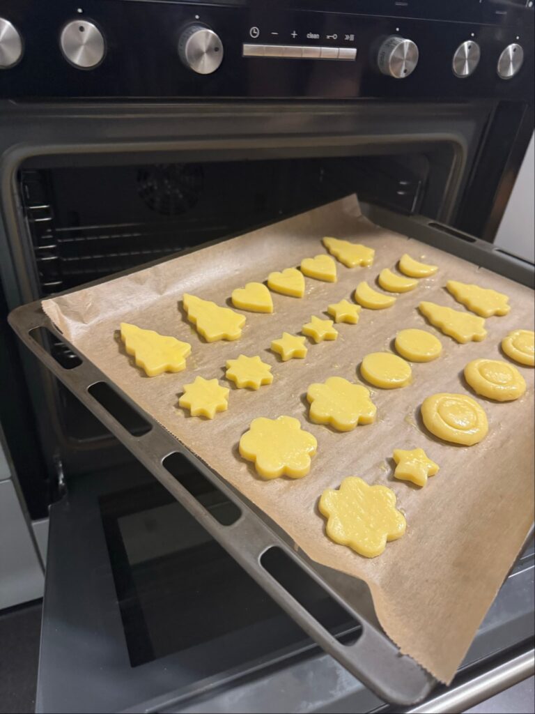 Stern formen: Drücke die Seiten vorsichtig mit dem Daumennagel nach innen, um die Zacken zu formen.